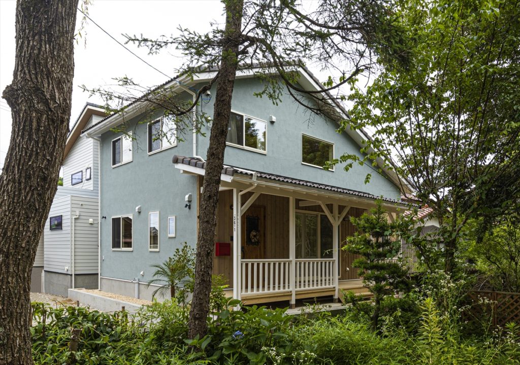 大胆な色使いだけれどうまくまとまった外観はお施主様のセンスが感じられる