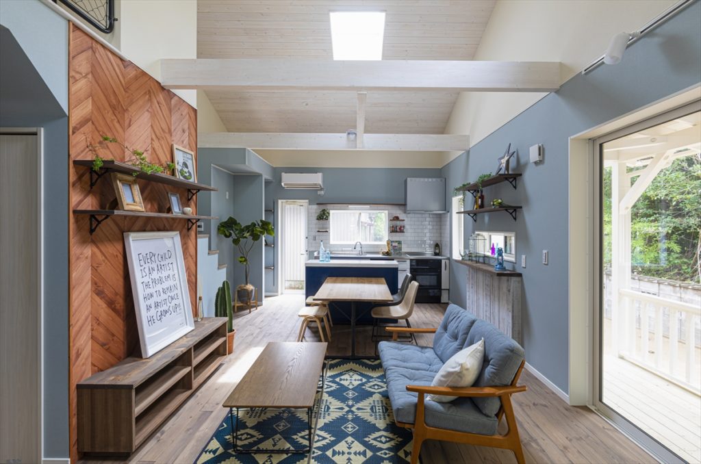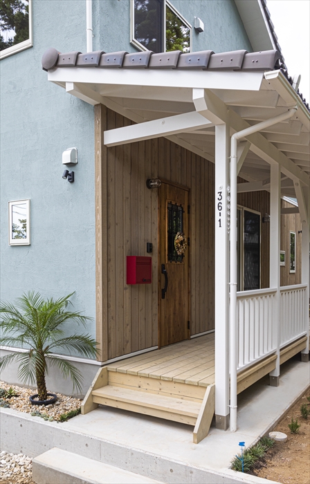 西海岸を思わせる爽やかなカラーとウッドデッキ