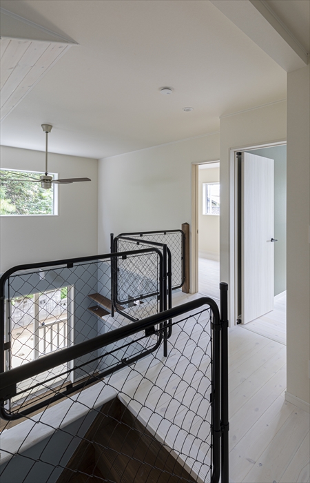 吹抜けの柵もアメリカンフェンスを使ってかっこよく。