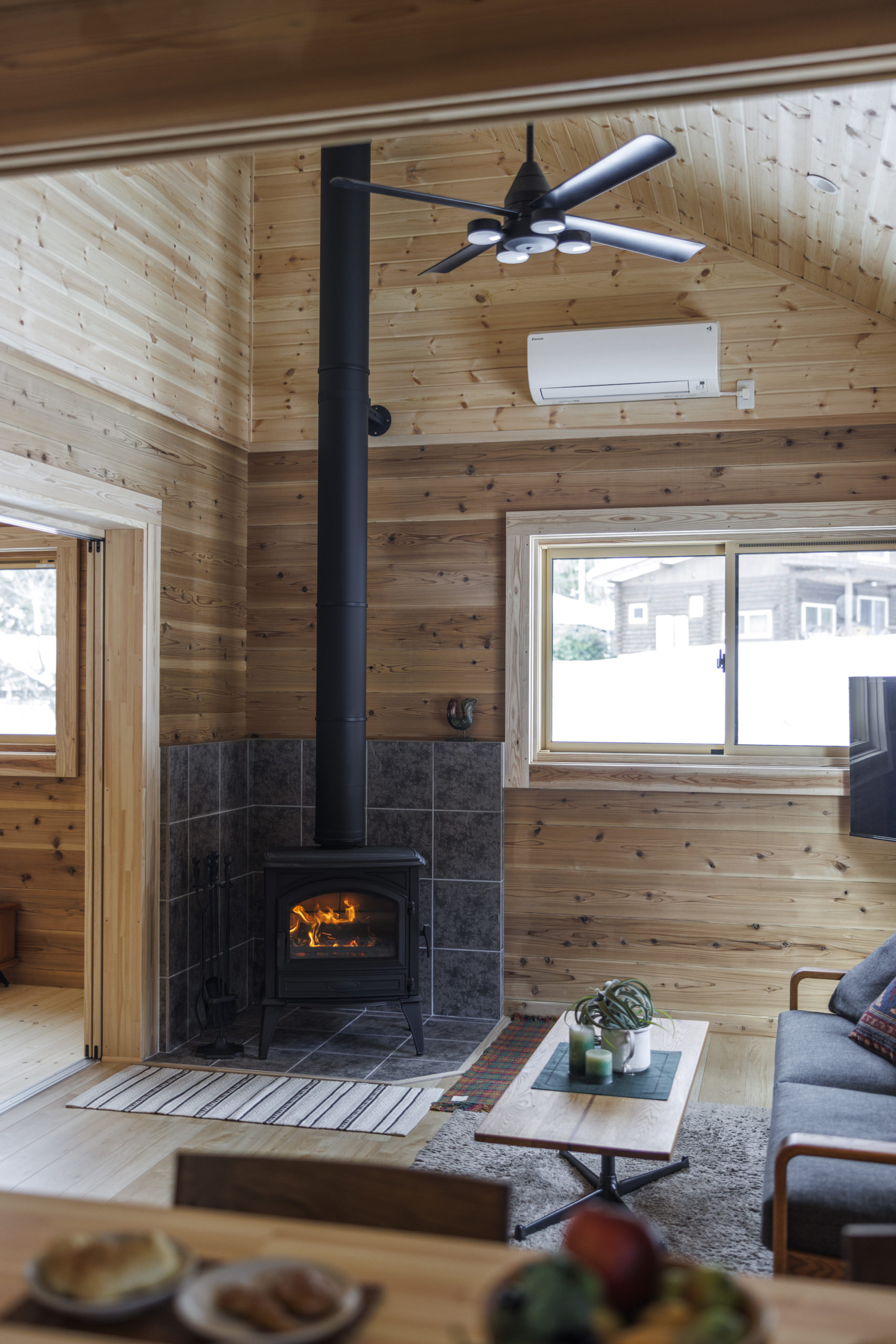 薪ストーブの火をゆったりとながめる